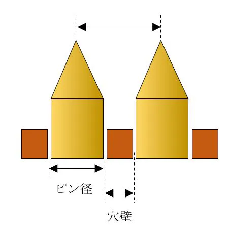 例えば、検査基板のパッド表面にビアの凹凸がある仕様の場合、小径ピンでは折れや曲がりが発生しやすいという課題を解決できます。